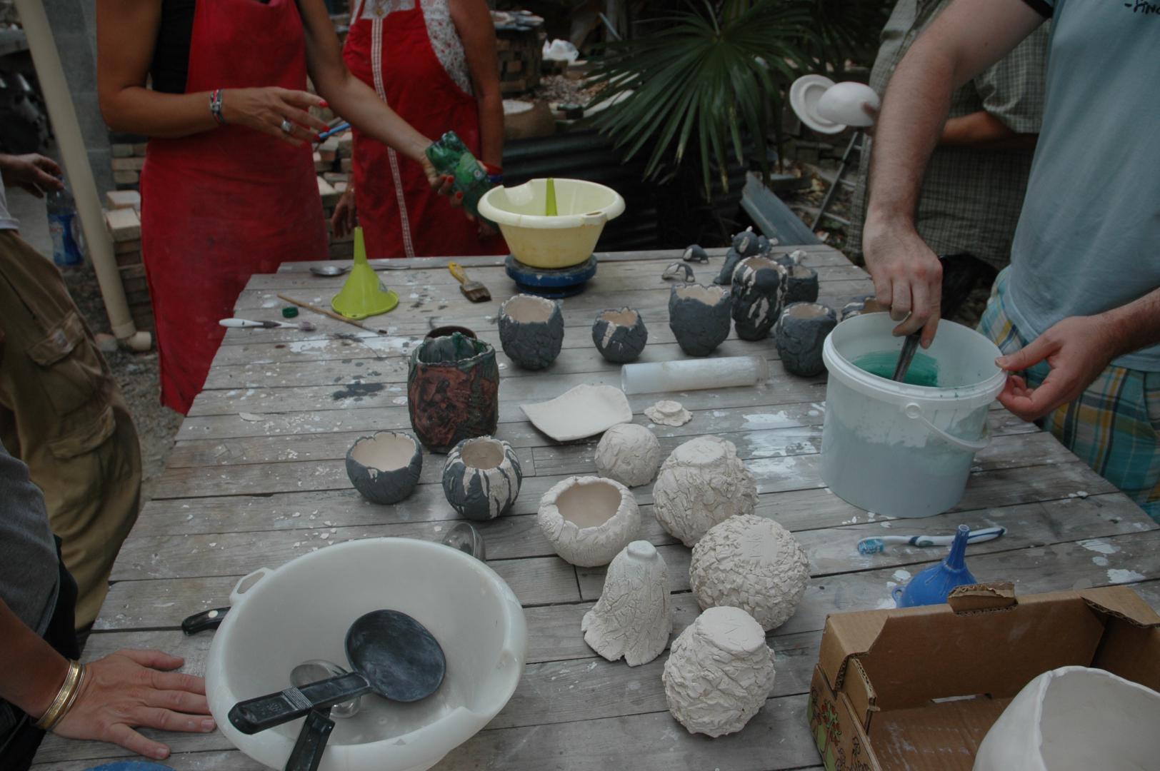 Prêt pour la cuisson . Stage poterie en Ardèche